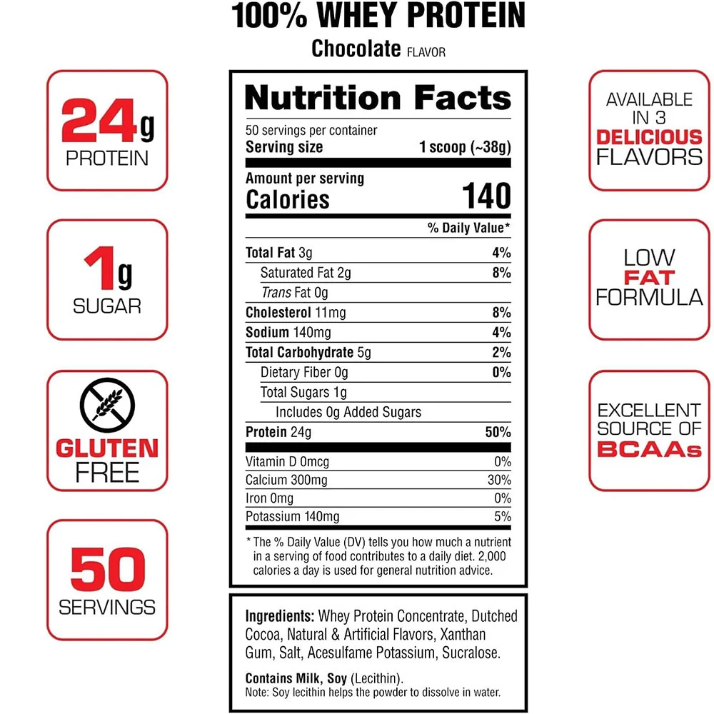 Labrada® 100% Whey Protein is a high-quality, micro-filtered whey protein concentrate designed to support muscle recovery, strength, and overall health. Ideal for athletes, fitness enthusiasts, bodybuilders, and dieters, it delivers all essential amino acids—including BCAAs and glutamine—to help fuel muscle repair and growth after training. With only 1g of sugar, low fat, and absolutely no gluten, it’s a clean choice for those who demand purity in their nutrition. This protein powder mixes easily with water, milk, or juice, making it perfect for boosting your protein intake at meals or as a convenient in-between snack. Backed by Lee Labrada’s quality guarantee and independently lab-tested, what’s on the label is truly in the bottle—no compromises.
